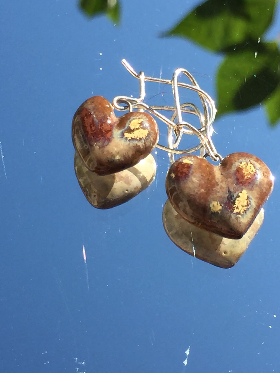 Sydän-korvakorut, vaaleabeige/pähkinäsuklaa